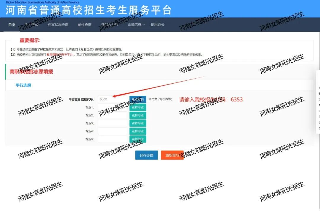 河南女子职业学院代码:6353