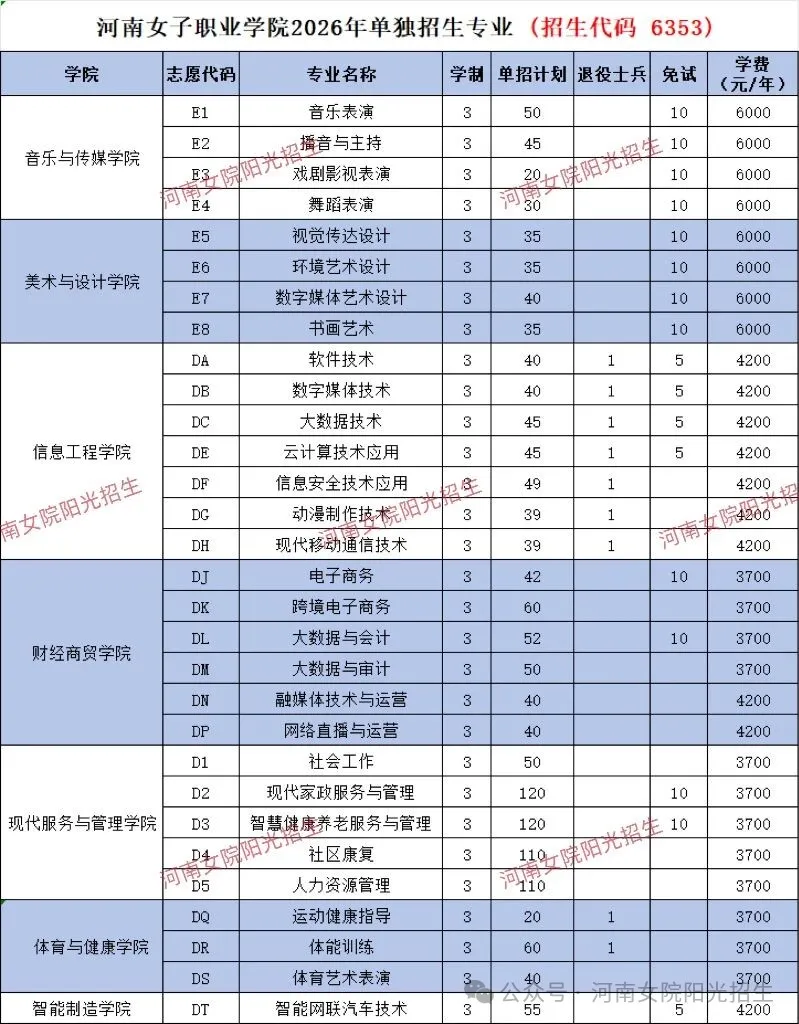 河南女子职业学院招生代码6353