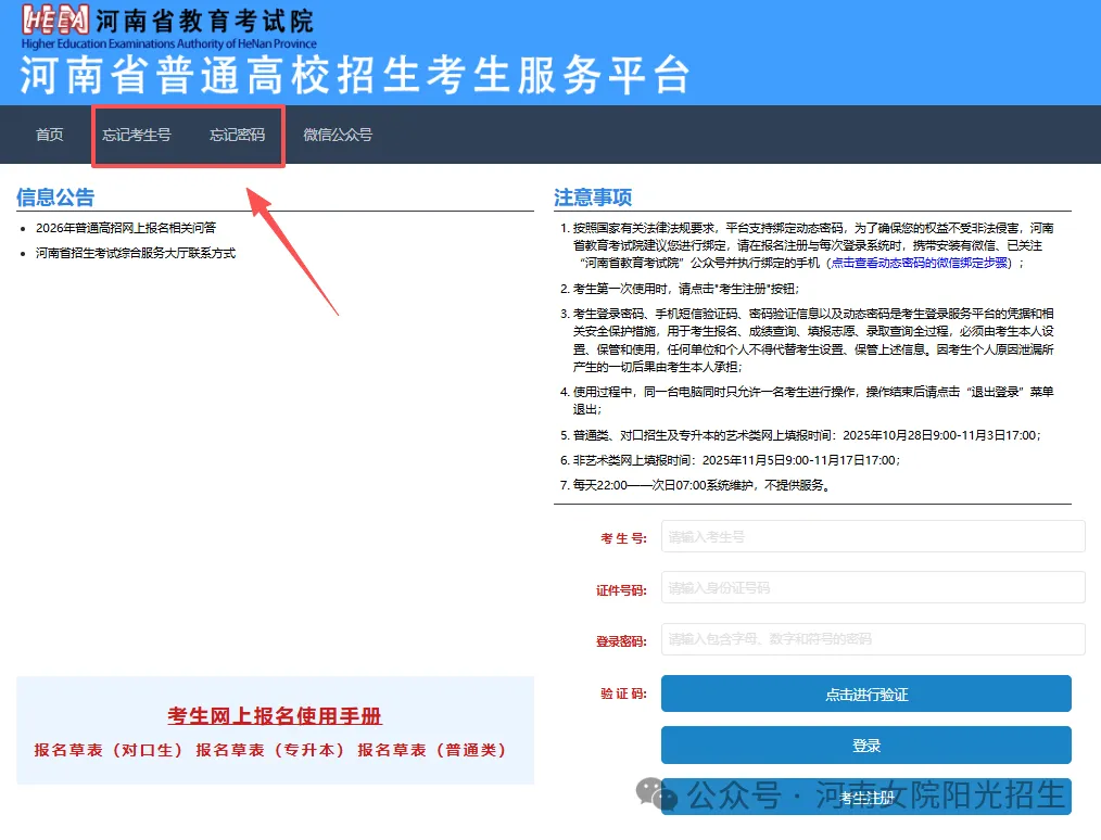 河南省普通高校招生考生服务平台